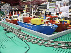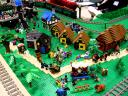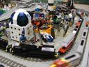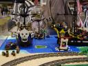 We invited participants to decorate different sections of the layout with themes which we don’t usually include in a display. Besides the areas of Kevin’s City and Greg’s Town, we had displays in the theme of Pirates from Abe, Castle and Harry Potter from Christina, Space from Aaron and Bob and guest Pat, Wild West from Ken, and Boats from Marian.