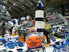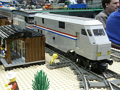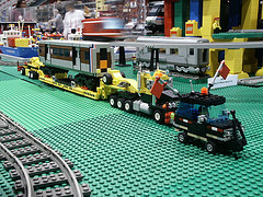 We had a display at the Greenberg’s Train Show at The Show Place Arena. A particular highlight of the juxtapositioning of multiple themes was guest Pat Bunn’s display of mecha overrunning the Space section and encroaching on the Castle section while crossbow archers stood bravely in defense.